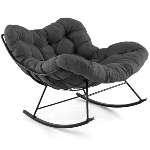 – 【Comodidad Amplia y Resistente】 Esta silla mecedora de gran tamaño tiene un marco metálico con capacidad para 205 kg y un asiento grande y ergonómico. Con dimensiones de 110 x 95 x 94 cm (L x AN x AL), el generoso diseño de gran tamaño permite que tu cuerpo se relaje por completo.